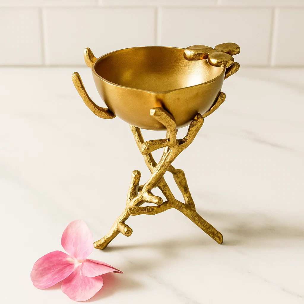 Introducing the Brass unique diya on a brass branch , a stunning and intricately designed piece that combines natural inspiration with luxurious craftsmanship. This exquisite candle holder is perfect for adding a touch of sophistication, warmth, and beauty to your home decor.