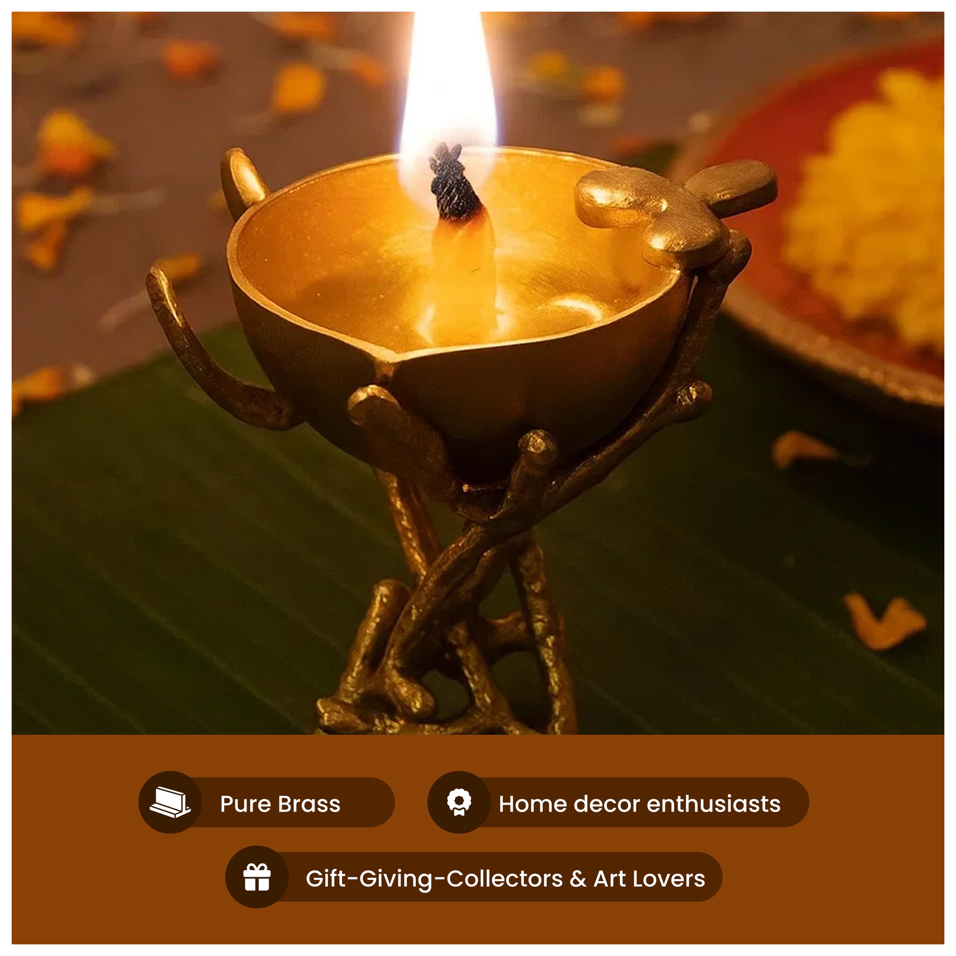 Introducing the Brass unique diya on a brass branch , a stunning and intricately designed piece that combines natural inspiration with luxurious craftsmanship. This exquisite candle holder is perfect for adding a touch of sophistication, warmth, and beauty to your home decorAnd temple.
