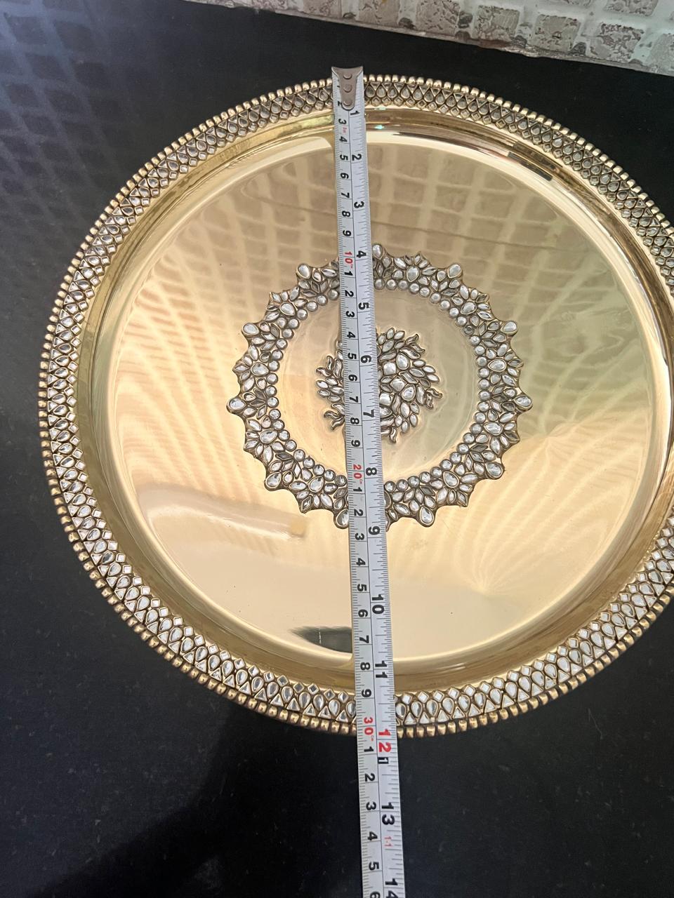 Brass Pooja Thali set with Kundan work (8 inch)